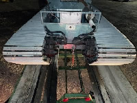 L05212025   Swamp Buggy  with tracked pontoons, powered by ainline 6 cyl diesel engine with hydraulic to chain drive, front and rear winches, 33 hours showing, 16FT L, 12 FT pontoon L, 10 FT 4 IN width - P.O.R.